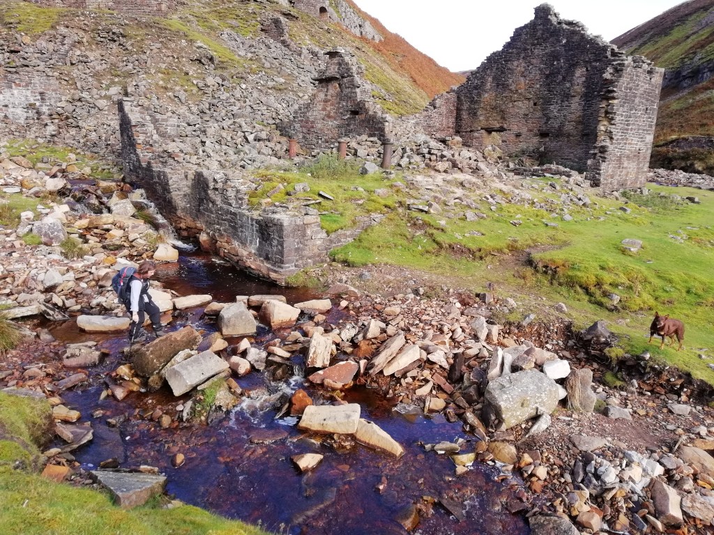 After a short break we start descending down into a valley with the ruins of old mine works, Blakethwaite peat store.