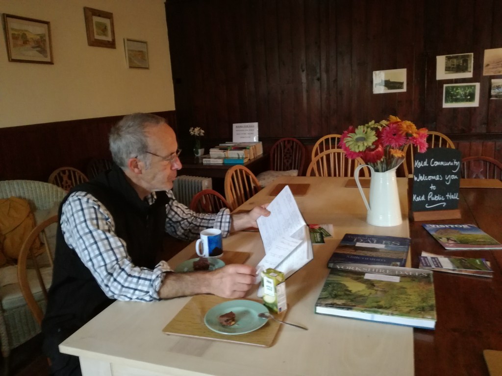 After arriving at Keld we found in the village hall, home made cakes and biscuits You You put £1 in a box and help yourself to a cup of tea or home made cakes. Dogs can go in as well. You have to wash the dishes after.
