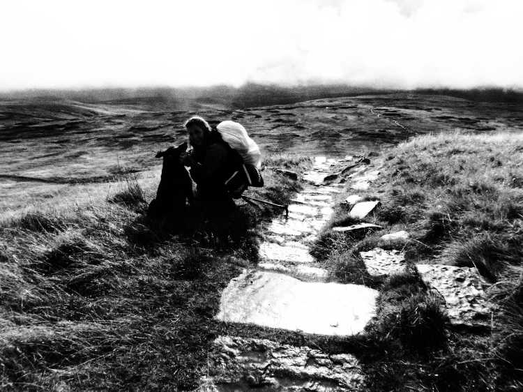 As we walked higher up the fell the clouds started to descend on us making a fine mist which covered us in droplets.