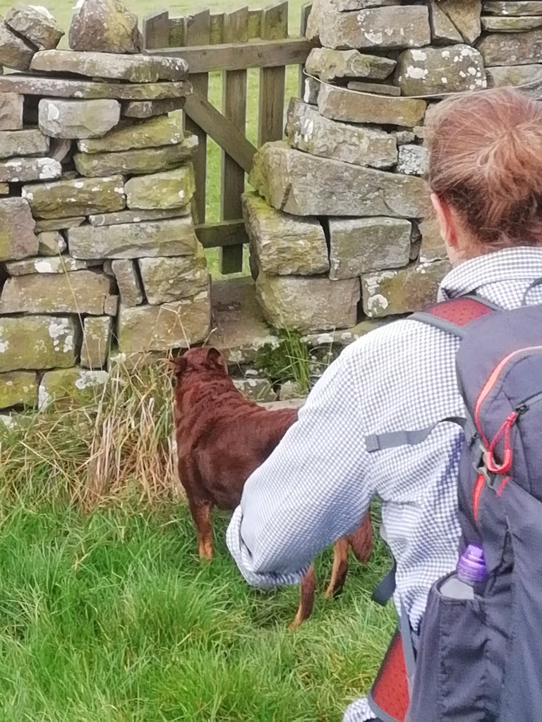 We set off again and were making good time but I had no mobile signal for the paths. After about an hour of walking and keeping the river in mind we came to a halt as our way was blocked by one of the many Yorkshire walls. It was clear that we had taken a wrong turn so had to retrace our steps.